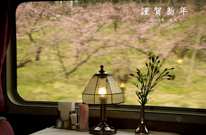 福島付近を走行中に食堂車の車窓からみた桃源郷は、父と娘の二人旅に花を添えてくれました。